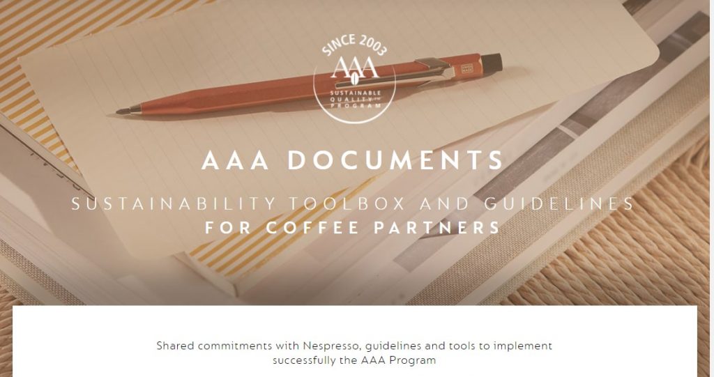 La plataforma digital para partners de café, que muestra información esencial para implementar el Programa AAA, desde documentación y documentos guÃa, incorporación y los contactos relevantes de los equipos de Nespresso.